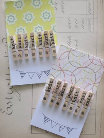 ![]() Petite hand stamped clothespins (knit/purl) partnered with decorative cards; nestled in cello bag wholesale $3.75 each (min. 6 assorted) |