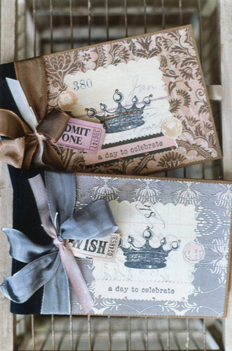 ![]() 4 1/2" x 7" photo book with assorted crown collages; embellished with french wired ribbon and a flourish of glitter wholesale $12 each (min. 3 assorted) |